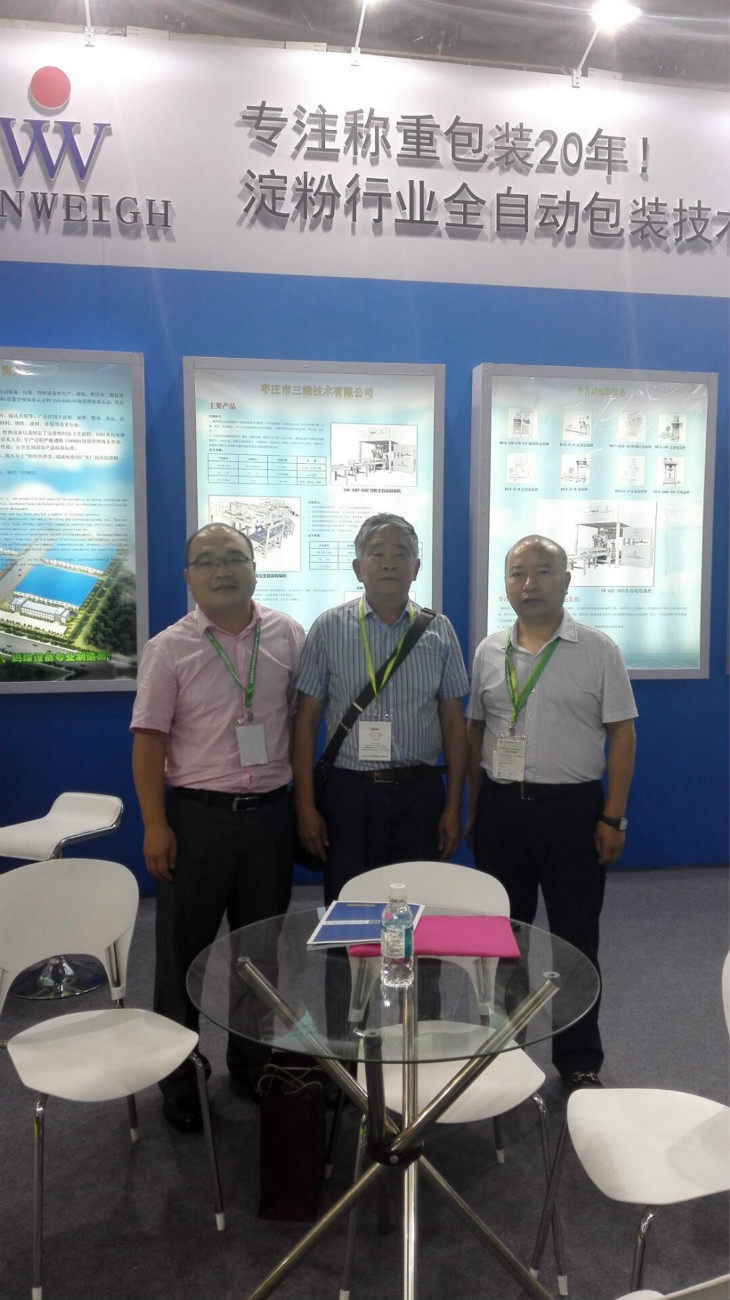 2016年6月22日,也是世界淀粉產業(yè)大會開幕第二天。棗莊市三維技術有限公司淀粉全自動包裝秤設備展會現場迎來了兩位大咖級人物,他們分別是現任中國淀粉工業(yè)協會秘書長魏旭明和前任秘書長孫明導。在公司楚經理的陪同下,秘書長魏旭明、孫明導參觀了我公司最新研發(fā)生產的淀粉全自動包裝秤設備,并對公司在淀粉包裝行業(yè)取得成績給予肯定。參觀指導后,公司楚經理與秘書長共同合影。秘書長魏旭明臨行前對公司寄予厚望,希望公司再接再厲,為淀粉行業(yè)的發(fā)展做出更大的貢獻。
